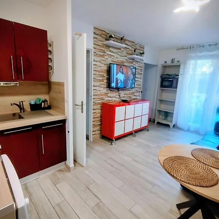 Charmant T2 Rd Jardin Grande Terrasse Coeur Ville Plage 2 M Clim Garage Wifiアパートの台所を利用でき、おいしい自家製の食事を作ることができます。 トゥーロン・イエール空港は60キロメートル離れた所にあります。